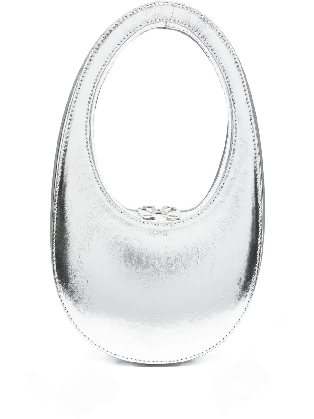 oval-frame leather shoulder bag Highlights - Grey - Metallic-effect leather - Shoulder strap - Zip fastening - Oval frame Made in Italy Composition Outer: Calf Leather 100% SIZE & FIT Model measurements Height 5 ft 9 in(1.75 m) Bust/Chest 34.64 in(88 cm) Hips 36.61 in(93 cm) Waist 26.37 in(67 cm)
