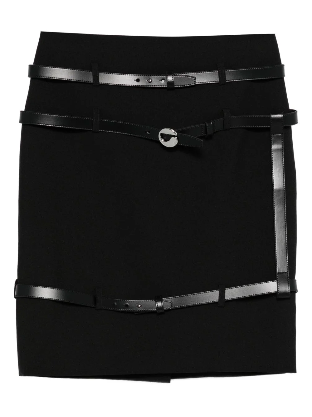 leather-trimmed belted skirt Highlights - Black - Multiple leather belts - Silver-tone buckle - Leather trim - Straight hem - A-line shape Imported Composition Recycled Polyester 100% SIZE & FIT Model measurements Height 5 ft 10 in(1.78 m) Bust/Chest 31.49 in(80 cm) Hips 37 in(94 cm) Waist 23.62 in(60 cm) Washing instructions Read Manufacturer Guidelines