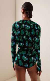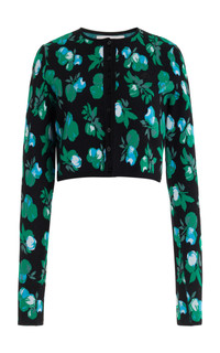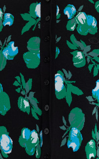 Showcasing their expertise in spinning cool, seemingly minimal pieces from complex constructions, French talents Sebastien Meyer and Arnaud Vaillant offer a range of instantly cult-worthy silhouettes. This cropped fitted cardigan is spun from viscose and knit with an intarsia-jacquard design. Pair it with the matching shorts. PRODUCT DETAILS - Resort '25 - Button fastenings through front - Composition: Viscose - Designer color: Blue Apples - Dry clean - Made in Italy SIZE & FIT - Designed for a slim fit