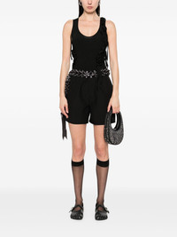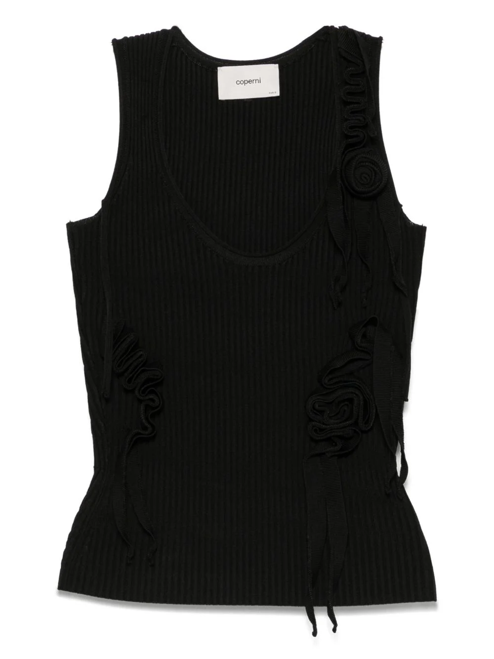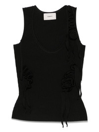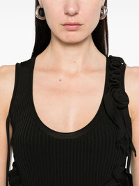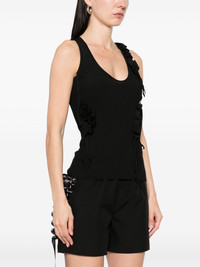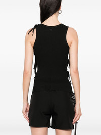 knitted ribbon tank top Highlights - Black - Scoop neck - Sleeveless - Strap detailing Made in Italy Composition Viscose 90%, Polyamide 9%, Elastane 1% SIZE & FIT Model measurements Height 5 ft 10 in(1.78 m) Bust/Chest 33.46 in(85 cm) Hips 36.22 in(92 cm) Waist 23.22 in(59 cm) FittingInformation Designed for a close fit throughout Made with a midweight knit, this piece offers some stretch