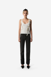 Deconstructed and full of movement thanks to an engineered assembly of knots and ribbons ties, this white tank top is crafted from a soft stretch knit for a close style that sits at the waist. It was showcased in black at Coperni's SS25 show held at Disneyland Paris, a catwalk ode to childhood and the magic of fairytales. Its seemingly 'shredded' style is a nod to the Disney's classic animations and especially its enchanting female characters, such as Snow White, Cinderella, Belle, Aurora and Ariel who thrive, flourish and forever delight in stories that continue to capture the imagination. Details White COPML145Y3011 100% Pu Made in Italy