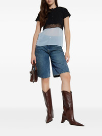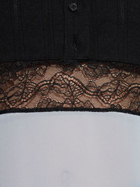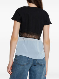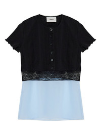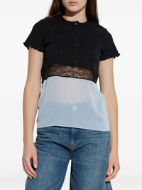 lace-panelled blouse Highlights - Black - Lace panel - Button fastening - Short sleeves - Ribbed knit - Scalloped trim Made in Italy Composition Cotton 100%, Polyester 100% Washing instructions Read Manufacturer Guidelines