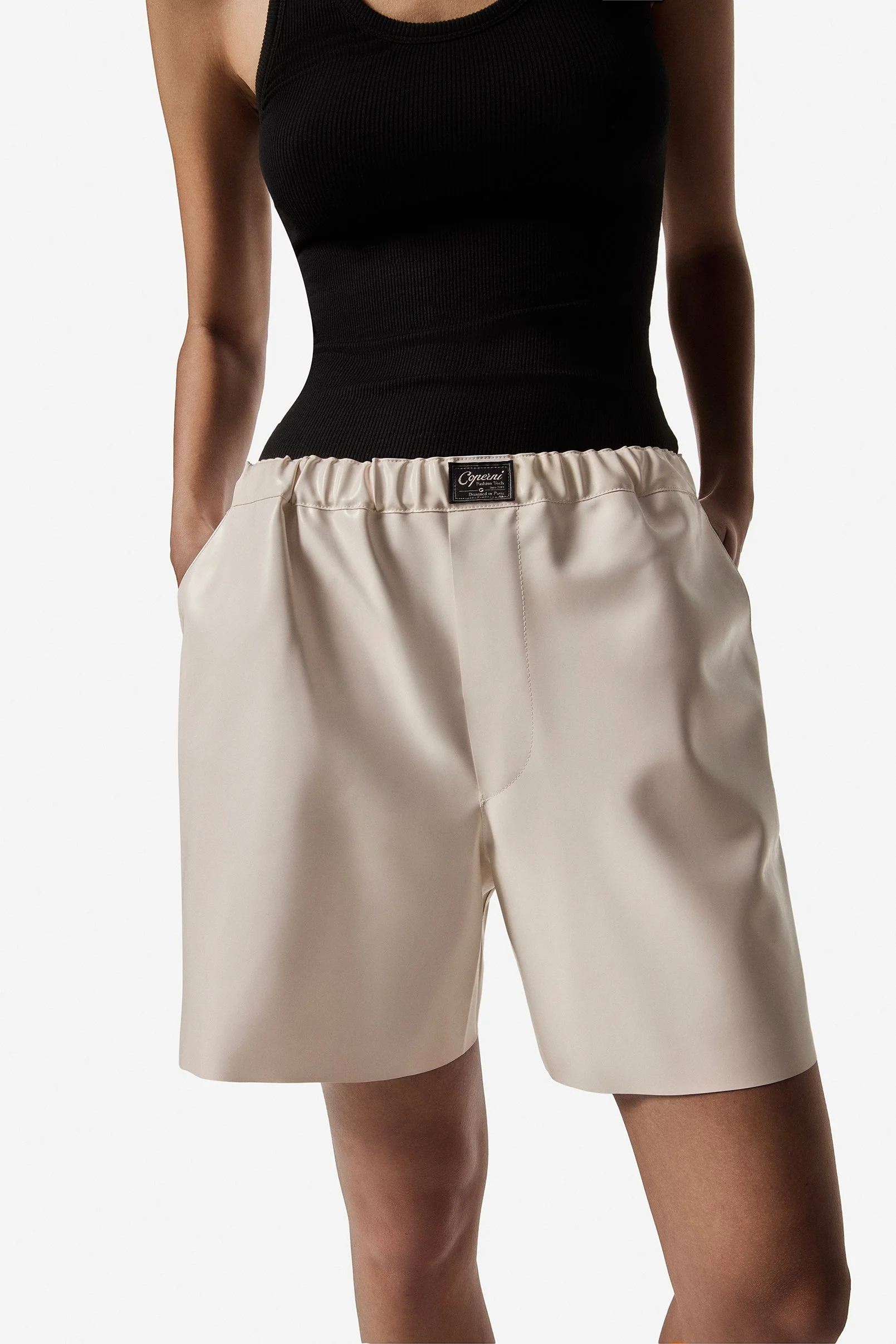 These Coperni shorts tilt the beloved off-duty 'boyfriend' look towards a more daring style. Cut from glossy white rubber latex and designed for a slouchy fit, they can be worn high or low on the waist. At the front, they feature a Coperni logo patch with a vintage-style graphic design. Details White 100% Natural Rubber Latex Made In Italy COPP92F9001 Size and Fit Model is 174 cm / 5.7 ft and wears size S