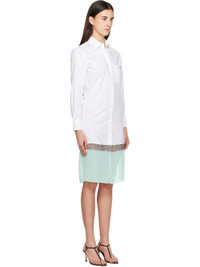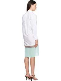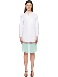 Cotton poplin midi dress. · Spread collar · Button closure · Patch pocket and logo hardware at chest · Lace and satin trim at hem · Slit at side seam · Buttoned barrel cuffs · Box pleat at back yoke Supplier color: White/Green Body: 100% cotton. Trim 1: 100% polyester. Trim 2: 80% polyamide, 20% lycra. Made in Italy 252325F054011