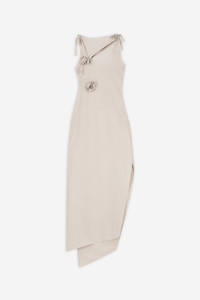 A fresh, summery interpretation of the Flower Gown. Cut from a light, breathable linen with a subtle texture, it features delicate rosette-like knots that gather and twist the fabric along the body, creating organic movements. It feels sensual yet effortless, capturing a more relaxed, sunlit expression of the brand’s signature femininity. Details - Composition: Linen - Made in: France - Sku: COPR272F2060