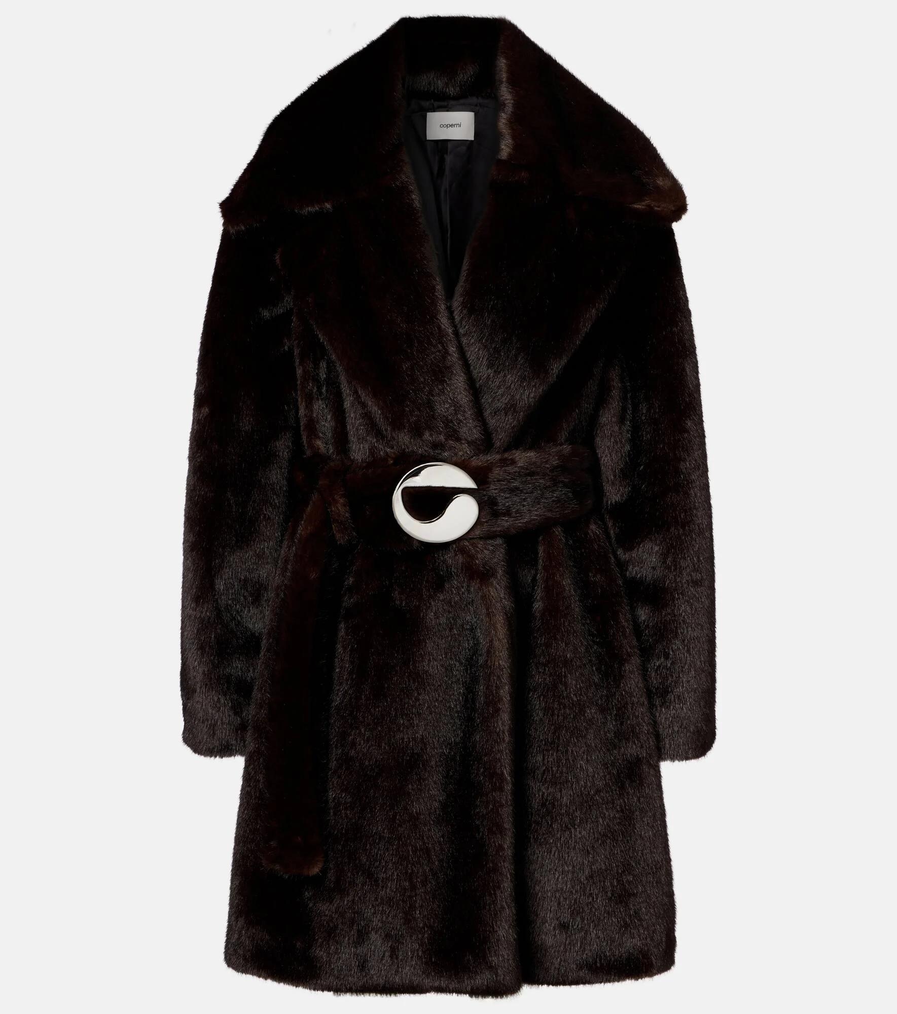 Coperni takes its name after the astronomer Nicolaus Copernicus, whose precise work inspires the brand’s deeply detailed designs. This coat is made from soft, plush fabric with a detachable logo-adorned belt and side-slit pockets. Product Details - Material: 100% polyester (recycled) - Care instructions: dry clean - Made in Portugal - Designer color name: Brown - Item color: brown - Lining: 52% viscose, 48% cupro - Hardware color: silver - Detachable belt - Pockets: side slit pockets - Closure: belted waist - Vent: single - Item number: P01100756 Size & Fit - True to size - Loose fit, comes with belt - Non-stretchy fabric - The model seen in the picture is 178cm-5'10" and wearing a size XS