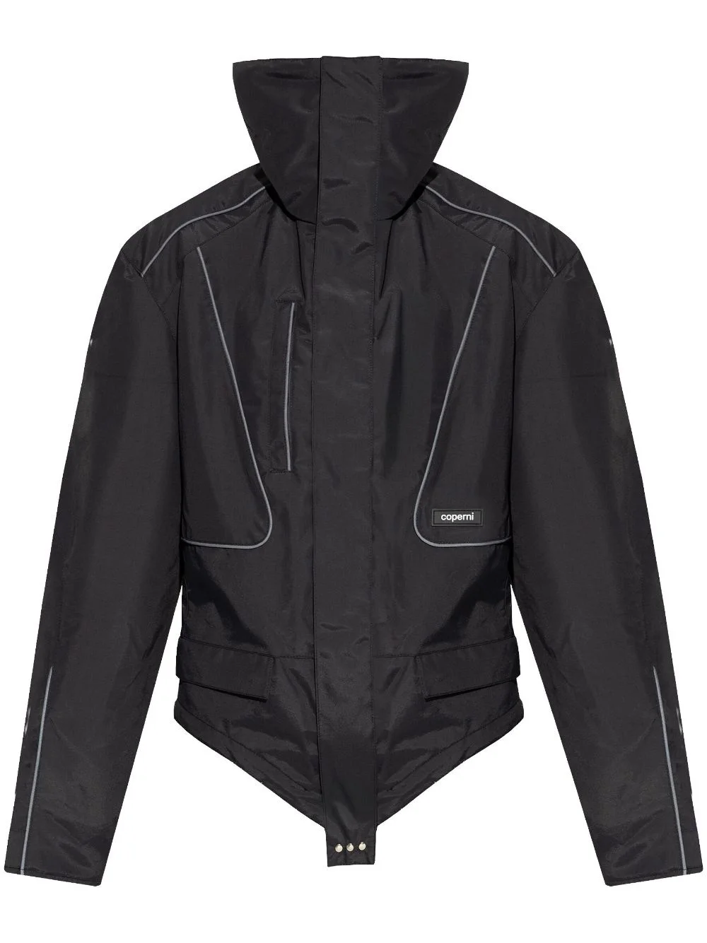logo jacket Highlights - Black - Front zip fastening - High neck - Long sleeves - Two side flap pockets - Logo patch to the front Made in Italy Composition Polyester 65%, Cotton 35% SIZE & FIT FittingInformation Designed to be unstructured, offering a loose fit throughout Made from a midweight non-stretch fabric