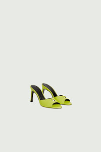 Elegant lime green leather mules embellished with a silver Coperni logo. Crafted from soft Italian leather with a sleek stiletto hell, these bright and breezy lime green mules are an instant mood enhancer. Endowed with a supportive sole and a carefully proportioned arch, they are embellished with a little silver Coperni logo. Details LIME 100% Calf Leather COPSH29405 Made in Spain Size and Fit True to size.