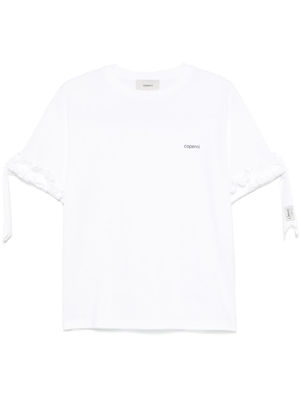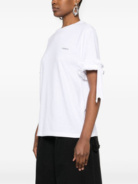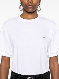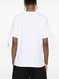 logo-print ruffle-trim T-shirt Highlights - White Imported Composition Organic Cotton 100% SIZE & FIT Model measurements Height 5 ft 11 in(1.8 m) Bust/Chest 31.49 in(80 cm) Hips 36.61 in(93 cm) Waist 24.4 in(62 cm) FittingInformation Designed for a relaxed fit, this piece allows for comfort and movement when worn Made from a midweight non-stretch fabric, this piece offers minimal elasticity when worn