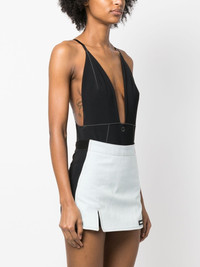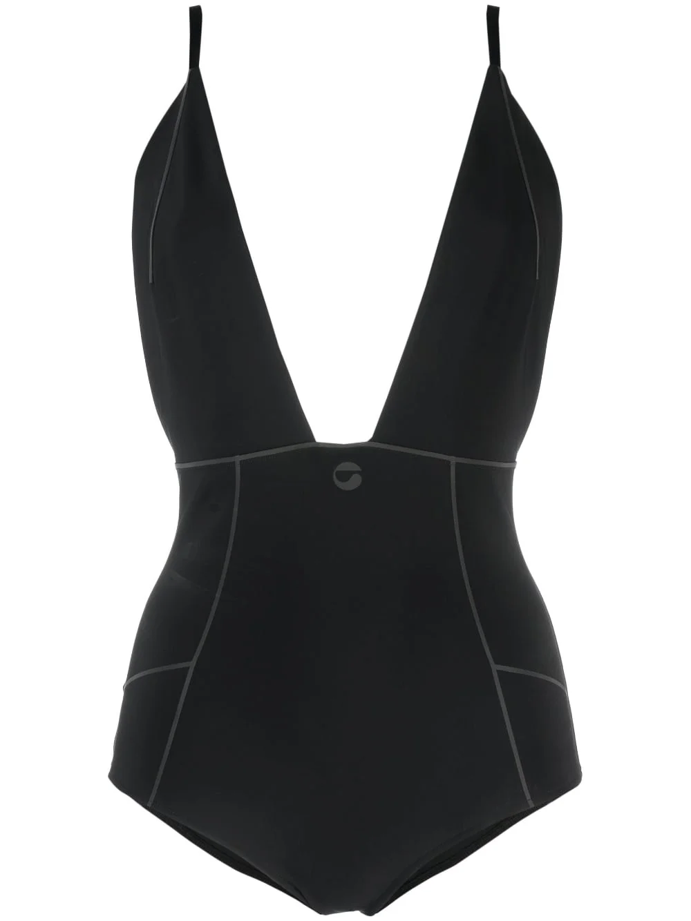 logo-print V-neck bodysuit Highlights - Black - Stretch-design - Logo print to the front - Plunging v-neck - Adjustable spaghetti straps - Open back - Just a reminder that this piece must be tried on over your own garments. Made in Italy Composition Polyamide 85%, Spandex/Elastane 15% SIZE & FIT Model measurements Height 5 ft 11 in(1.8 m) Bust/Chest 31.49 in(80 cm) Hips 35.82 in(91 cm) Waist 24.8 in(63 cm) FittingInformation Designed for a close fit throughout The adjustable shoulder straps allow for a preferred fit when worn Made from a midweight stretch fabric, this piece offers elasticity and flexibility when worn This piece fits true to size – take your usual size Washing instructions Machine Wash