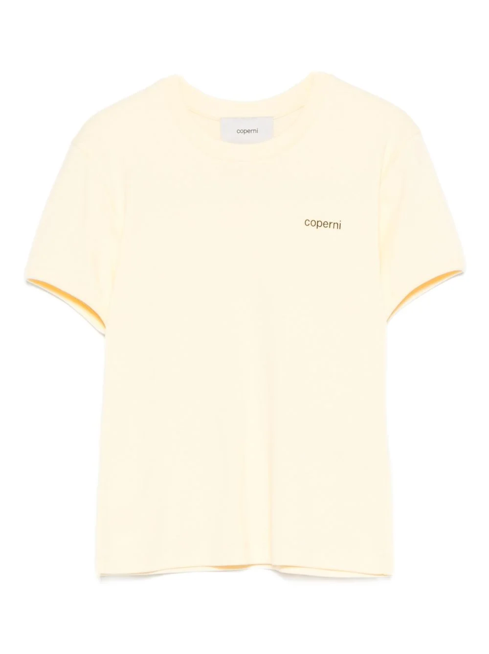logo T-shirt Highlights - Yellow - Logo detail - Round neck - Short sleeves Imported Composition Organic Cotton 100% SIZE & FIT Model measurements Height 5 ft 10 in(1.78 m) Bust/Chest 33.46 in(85 cm) Hips 36.22 in(92 cm) Waist 23.22 in(59 cm) FittingInformation Designed for a slim fit that sits just away from the body offering a close yet comfortable fit Made from a midweight non-stretch fabric, this piece offers minimal elasticity when worn Washing instructions Machine Wash
