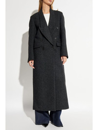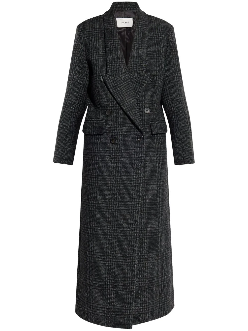 check-pattern coat Highlights - Dark grey - Check pattern - Felted - Double-breasted button fastening - Notched lapels - Two side flap pockets - Central rear vent Made in France Composition Wool 36%, Acrylic 28%, Polyester 25%, Polyamide 11% Washing instructions Read Manufacturer Guidelines