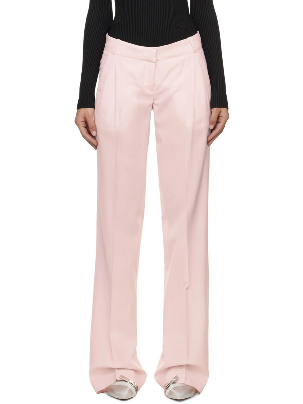 Loose-fit virgin wool delaine trousers. Glen check pattern throughout. · Low-rise · Belt loops · Three-pocket styling · Zip-fly · Pleats at front · Creased legs · Logo hardware at back pocket Supplier color: Pink/White 100% virgin wool. Made in Portugal 241325F087005