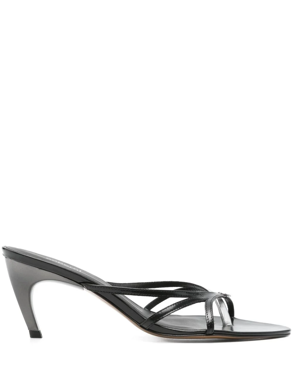 80mm leather heeled sandals Highlights - Black - Slip-on style - Pointed toe - Branded insole - Mid heel Imported Composition Lining: Calf Leather 100% Sole: Calf Leather 100% Outer: Calf Leather 100% SIZE & FIT Measurement HEEL 3.14 in(8 cm)