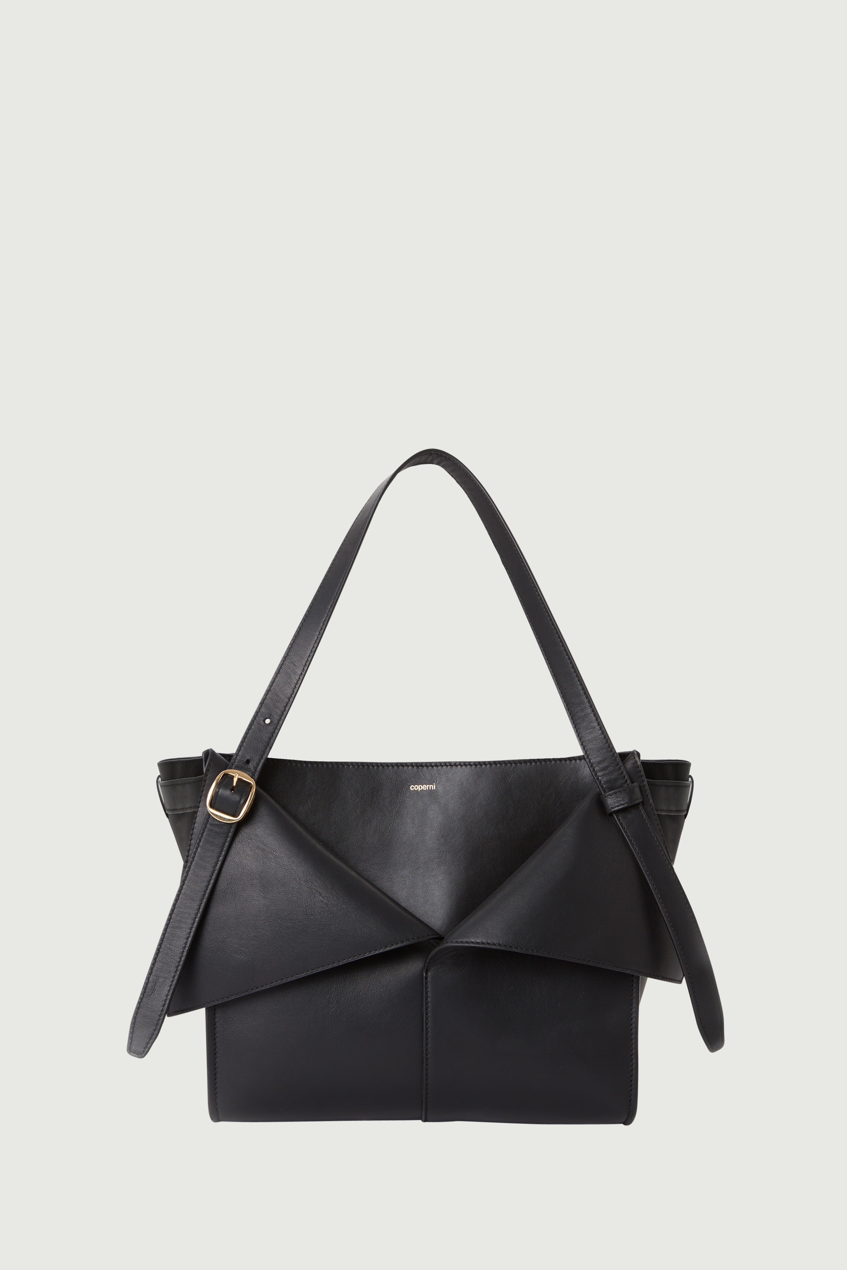 This minimalist Cabas bag has an origami-like design using folds of leather to create a geometrically constructed style which combines the strictness of straight lights with soft tucks and curves. Generously sized to hold all you need for the day, the bag is crafted from premium Italian black leather and has slim adjustable shoulder straps inspired by a belt, complete with buckle, punch holes and tucking loop. Details Black COPBA73492 100% Calf Leather Made In Italy Size and Fit Height 23cm / 9.5in Length 27cm / 10.6in Depth 19cm / 7.4in