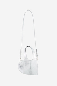 Like its large parent model, the Mini Heart Tote has a charming shape that promises to dress up any style. It has a slim profile ensuring it sits comfortably at your side thanks to a detachable cross-body strap. It can also be handheld thanks to an integrated arched shoulder loop, allowing it to easily transition from casual daytime staple to sophisticated evening bag. In this case, the mirrored silver material shines bright in all lighting, making it the perfect cross-seasonal accessory. DETAILS - Composition: Leather - Made in: Italy - Sku: COPBA93F6051