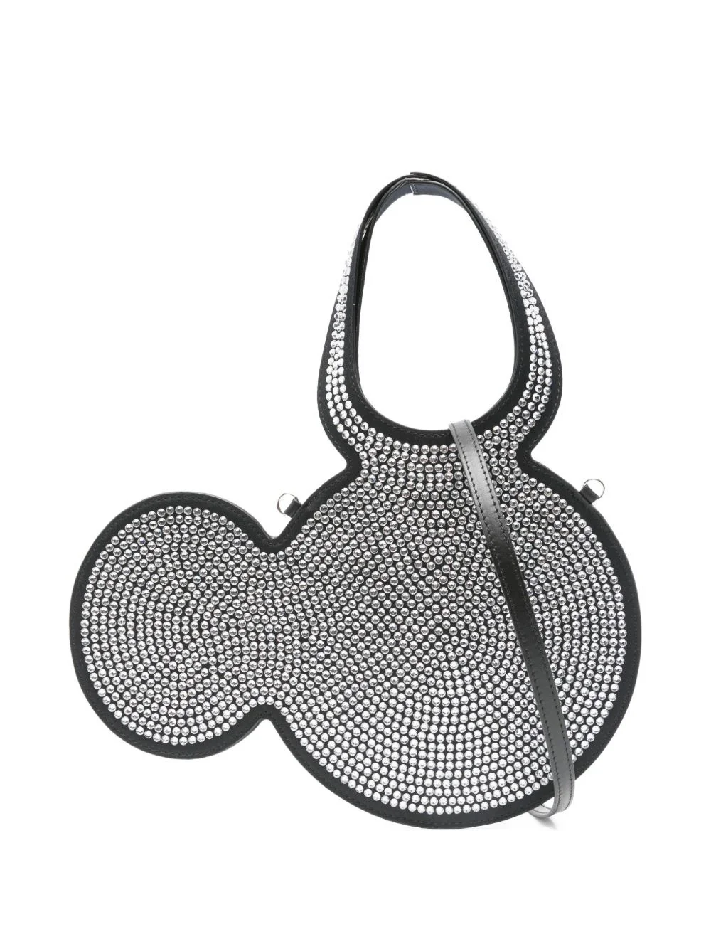mini Mickey embellished tote bag Highlights - Black - Calf leather - Detachable shoulder strap Made in Italy Composition Outer: Calf Leather 100%, glass 100% SIZE & FIT Model measurements Height 5 ft 10 in(1.78 m) Bust/Chest 31.49 in(80 cm) Hips 37 in(94 cm) Waist 23.62 in(60 cm) Measurement HANDLE 3.93 in(10 cm) HEIGHT 7.28 in(18.5 cm) WIDTH 7.48 in(19 cm)