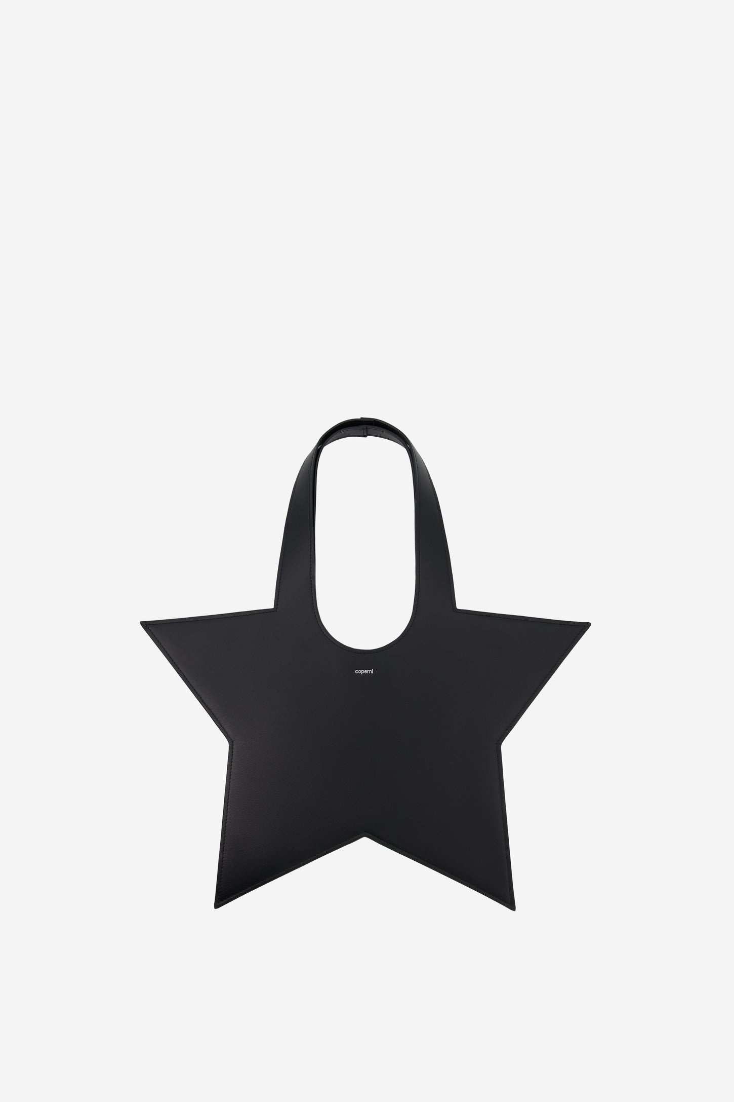 Like our signature heart-shaped tote, this star-shaped version, seen here in its mini form, has a slimline silhouette that sits elegantly against the body. It is crafted from super supple Italian black leather. The bag has a streamlined shape that uses one of the star points as a comfortable sturdy handle that can be hand held or swung across the shoulder. Details Black COPBA87F6031 100% Calf Leather Made in Romania