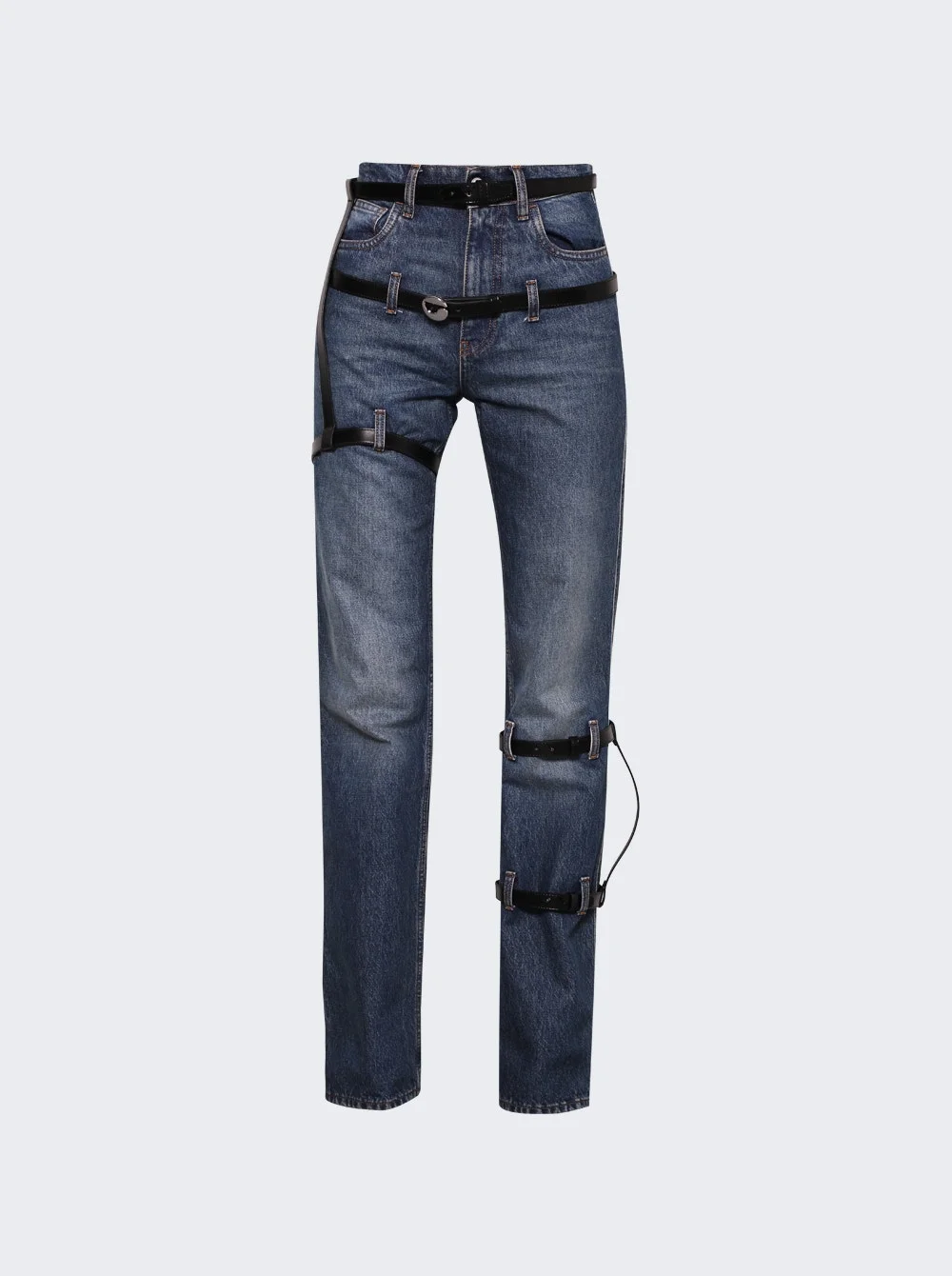 Multi Belt Denim Pants Blue Vintage