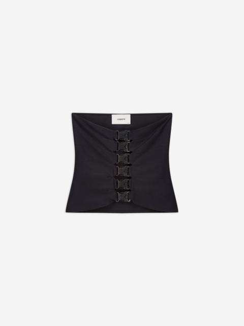 A confident piece with a lot of attitude. This strapless crop top features a sharp line of matte buckles through the center, giving a nod to utility gear, but making it fashion. Crafted from stretch fabric with a subtle sheen, it hugs the body like a second skin. DETAILS - Composition: Polyamide - Made in: Portugal - Sku: COPT99F5001