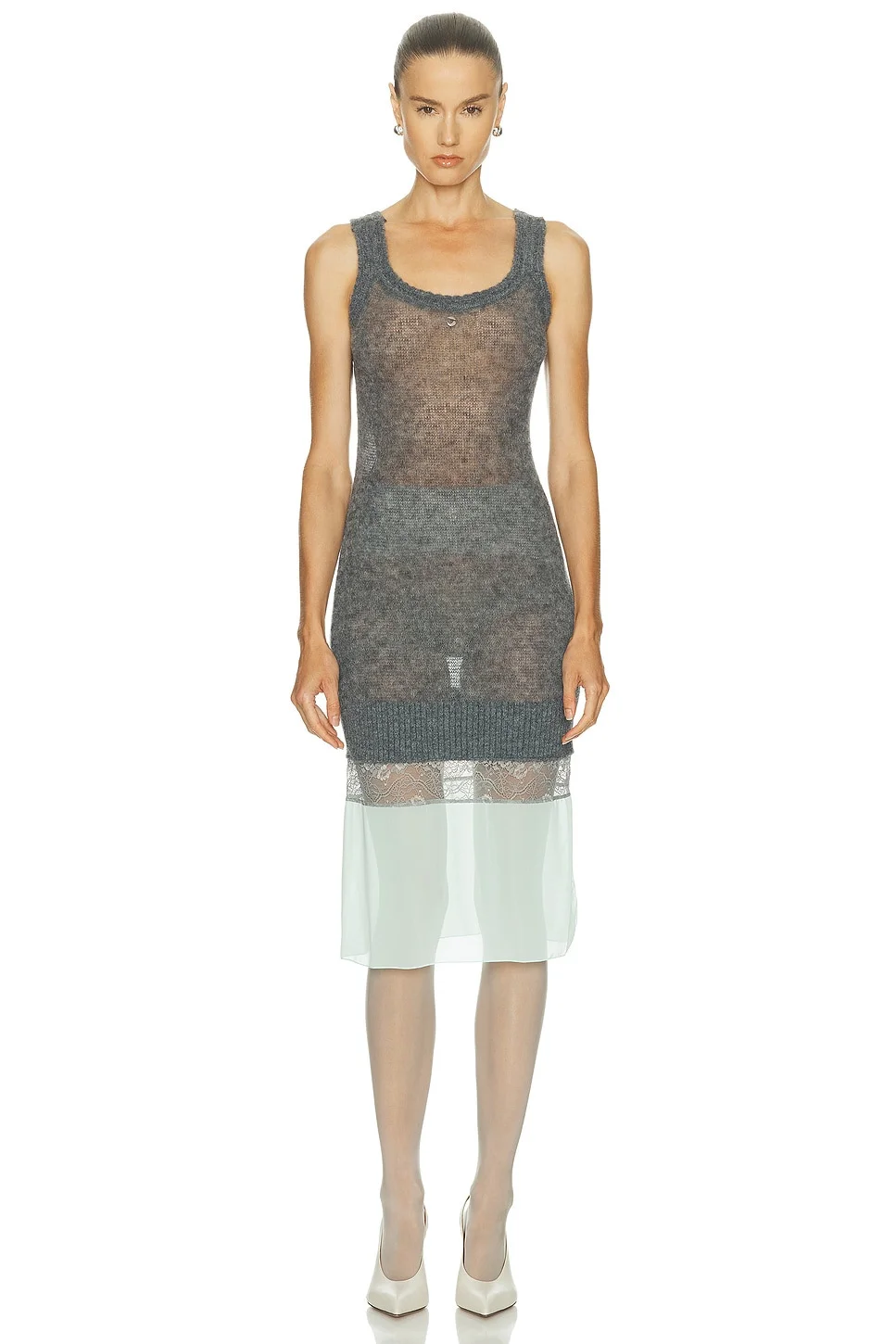 Details - Self 1: 45% polyamide, 30% alpaca, 25% merino wool - Self 2: 100% polyester - Self 3: 88% polyamide, 12% rayon - Dry clean only - Unlined - Pull-on styling - Front logo charm - Lightweight knit fabric with lace and chiffon panel at skirt - Garment is made with a semi-sheer fabric, undergarments can show through - Made in Italy - Our Style No. CRNF-WD100 - Manufacturer Style No. COPML173Y1003