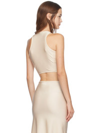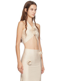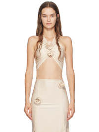Stretch nylon jersey tank top. · V-neck · Floral appliques at chest · Elasticized cropped hem Supplier color: Beige macadamia 80% polyamide, 20% elastane. Made in France 242325F111008