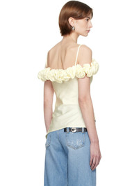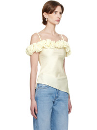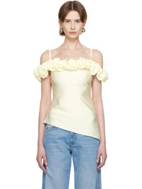 Stretch nylon jersey blouse. · Ruffles at straight neck and shoulders · Asymmetric hem · Vented side seams · Elasticized spaghetti shoulder straps · Unlined Supplier color: White avorio 80% polyamide, 20% elastane. Made in Portugal 251325F107004
