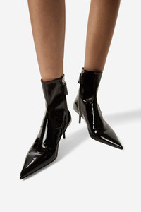 Versatile booties with a little kitten heel crafted from high gloss faux black leather. The front of the boot features a star pattern which culminates in a striking point at the toe. Details Black COPSH71F6026 100% Faux Leather Made in Italy Size and Fit Heel height: 6.5cm / 2.6in