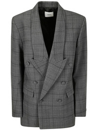 plaid-check pattern blazer Highlights - Grey - Virgin wool blend - Plaid check pattern - Tailored design - Wide peak lapels - Double-breasted button fastening - Shoulder pads - Two side flap pockets - Long sleeves - Buttoned cuffs - Straight hem Made in France Composition Outer: Virgin Wool 95%, Elastane 5% Lining: Viscose 100%