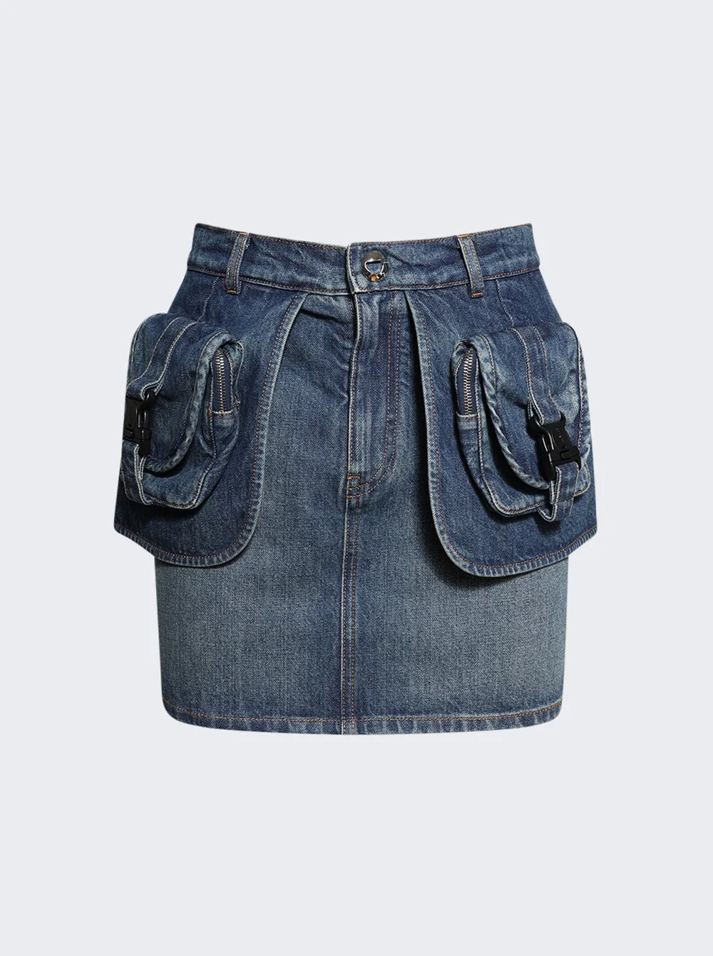 Pocket Basque Denim Mini Skirt Blue Vintage