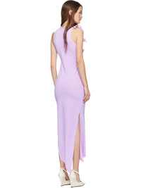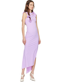 Stretch recycled nylon jersey maxi dress. · Boatneck · Knots and floral appliques at front and shoulder · Cutout at front · Asymmetrical hem · Slit at side seam Supplier color: Purple 78% recycled polyamide, 22% elastane. Made in France 261325F055010