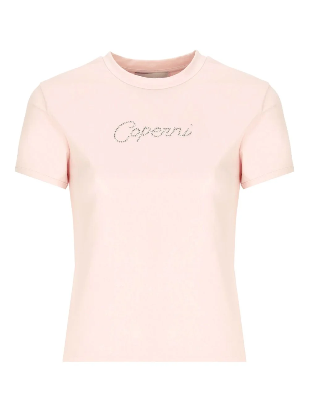 rhinestone-logo T-shirt Highlights - Light pink - Short sleeves - Crew neck - Front rhinestone lettering - Fitted silhouette - Smooth finish Imported Composition Fabric 100%
