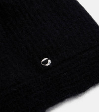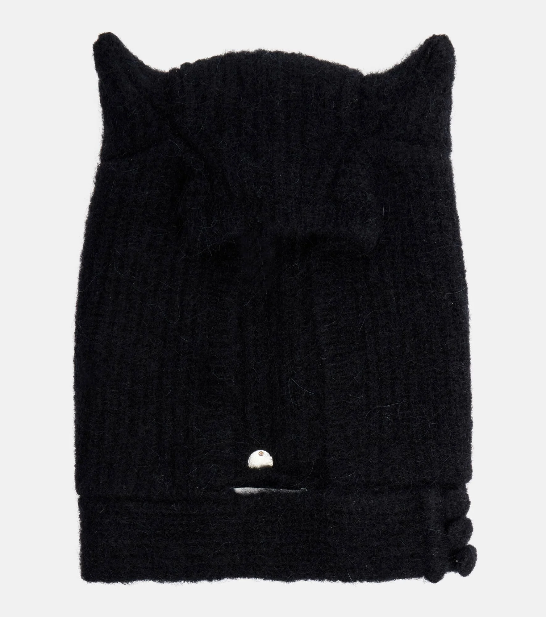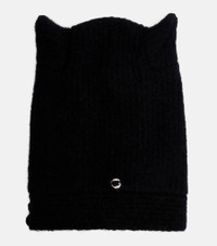 This beanie from Coperni is ribbed-knit from a warm alpaca and wool blend. This statement accessory features two pointed signature horns and a subtle silver-toned logo for a refined touch. Product Details - Material: 32% alpaca wool, 32% wool, 30% polyamide, 6% elastane - Care instructions: dry clean - Made in China - Designer color name: Black Blk - Item color: black - Hardware color: silver - Item number: P01052404 Size & Fit - Width 21cm-8.5"