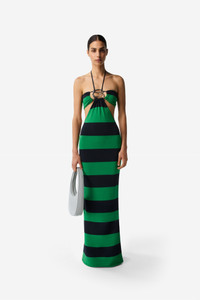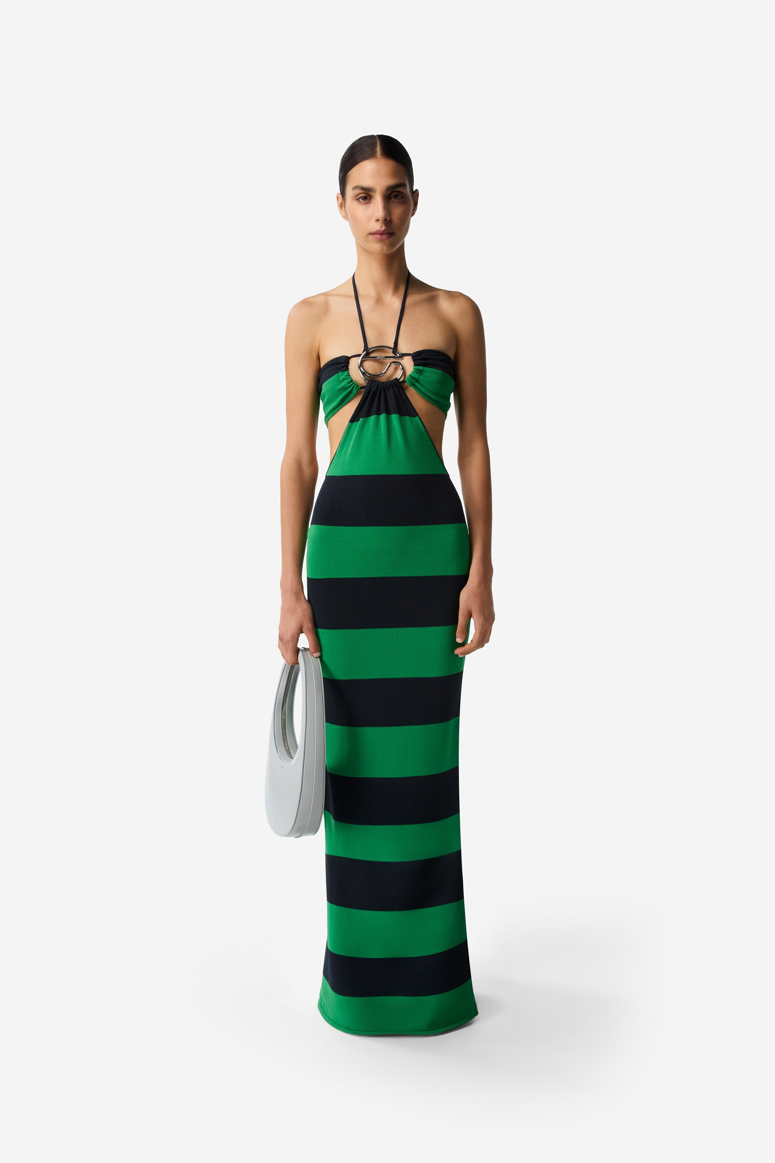 Part beachy, part sporty, our halterneck dress blends the best of both worlds for an eye-catching summertime look. Slim spaghetti straps support a bikini-style top which synchs into dynamic cut-outs, all held in place by a statement silver-toned jewellery clasp in the form of a sinuous C shape. Details Green-Blue COPML135SY3010 100% Viscose Made in Italy Size and Fit Model is 179cm / 5.10 ft and wears size S.