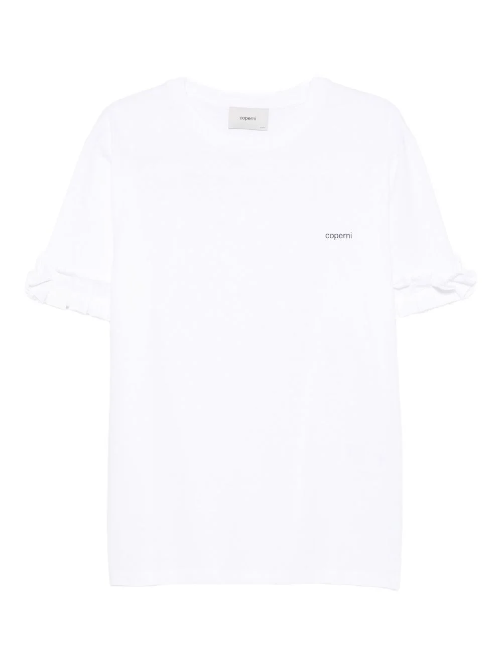 ruffle-sleeve T-shirt Highlights - White - Ruffle sleeves - Boxy shape - Small logo - Crew neck Imported Composition Organic Cotton 100% Washing instructions Machine Wash