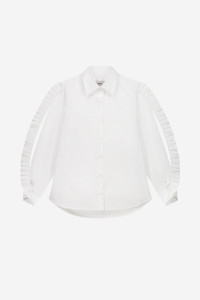 An architectural take on a classic silhouette, the ruffle shirt reimagines timeless tailoring through sharp detailing. Crafted from crisp cotton, it features sculptural ruffle panels running the full lenght of each sleeve - a minimal detail at first, strikes in motion. DETAILS - Composition: Cotton - Made in: Italy - Sku: COPCH73F2057