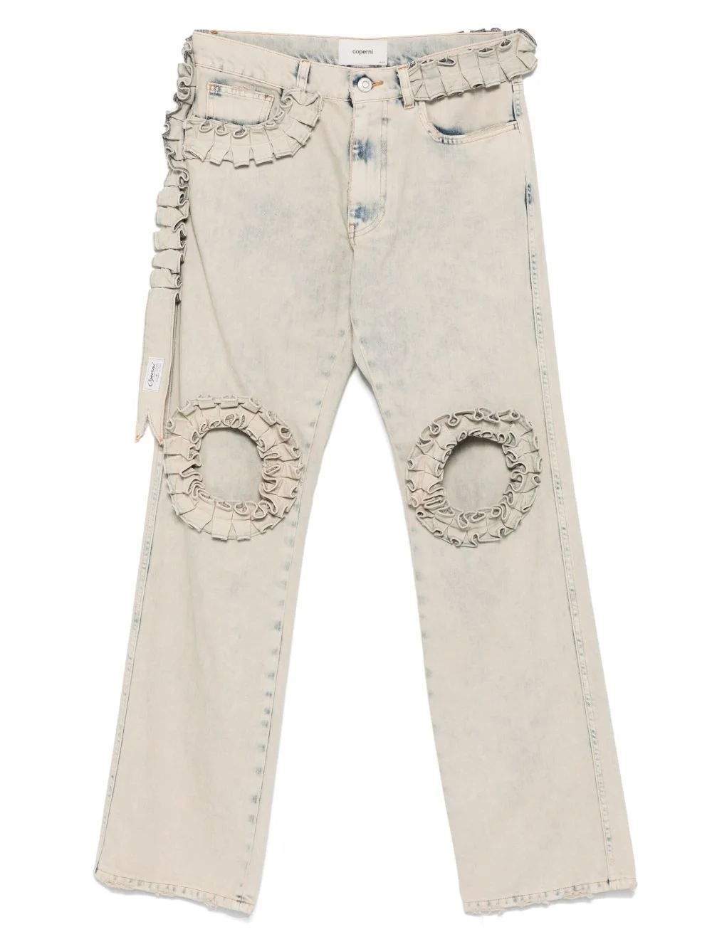 ruffle-detail boyfriend jeans Highlights - Taupe - Concealed fly and button fastening - Belt loops - Classic five pockets - Cut-out detailing Made in Italy Composition Outer: Cotton 100% Lining: Polyester 65%, Cotton 35%