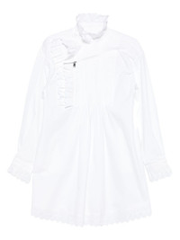 ruffled pleated dress Highlights - White - Ruffled neckline - Pleated bodice - Eyelet trim - Long sleeves - Zip detailing Imported Composition Cotton 100% SIZE & FIT Model measurements Height 5 ft 9 in(1.75 m) Bust/Chest 32.67 in(83 cm) Hips 36.22 in(92 cm) Waist 24.8 in(63 cm) Washing instructions Dry Clean Only