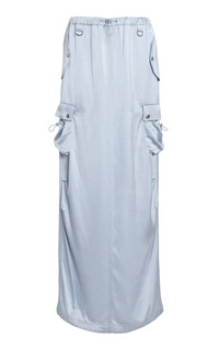 Satin Cargo Maxi Skirt blue