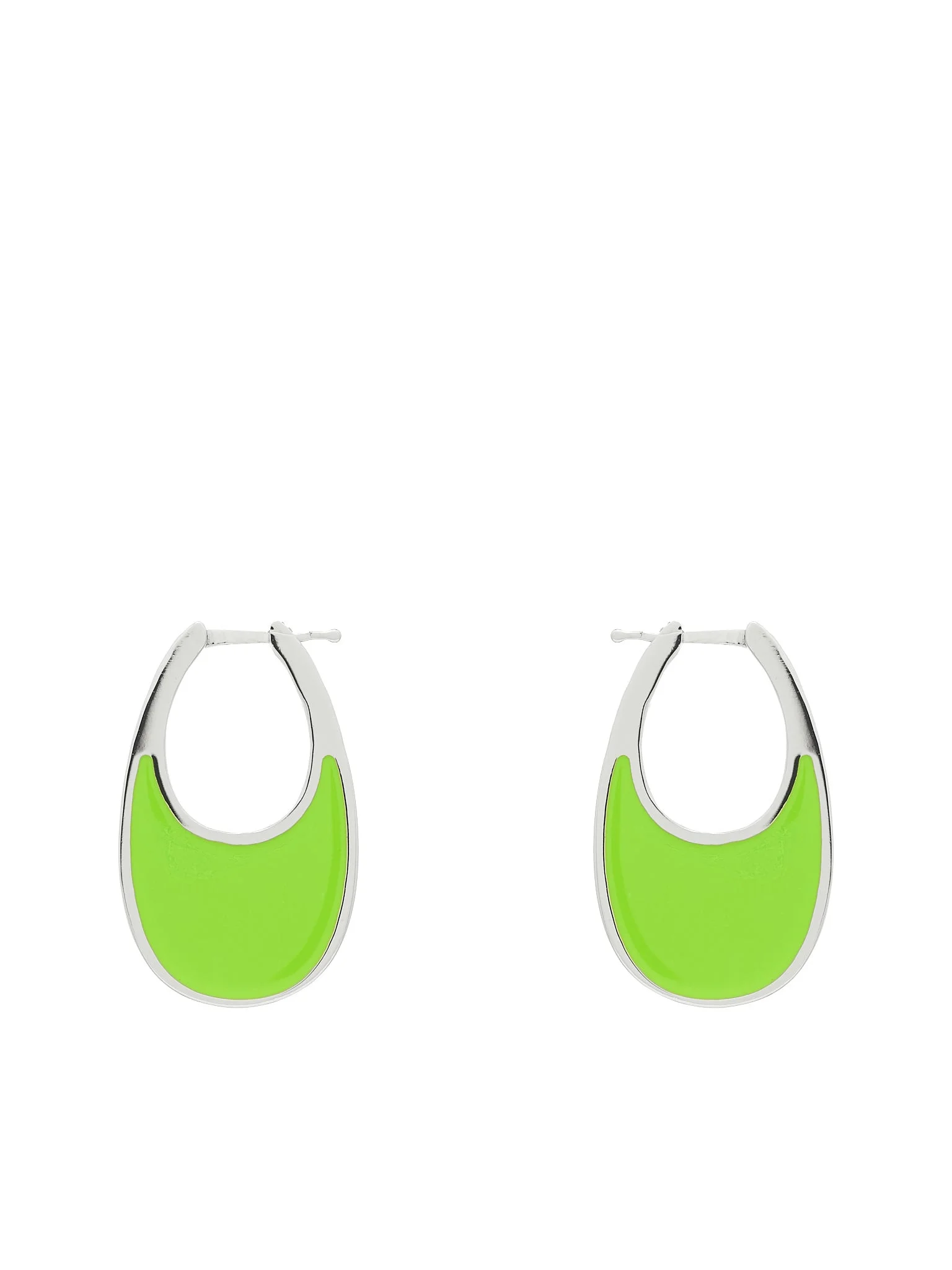 COPERNI earrings in lime green, signature swipe design, lacquered finish, embossed logo, english-lock closure. 100% Metal