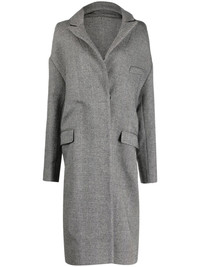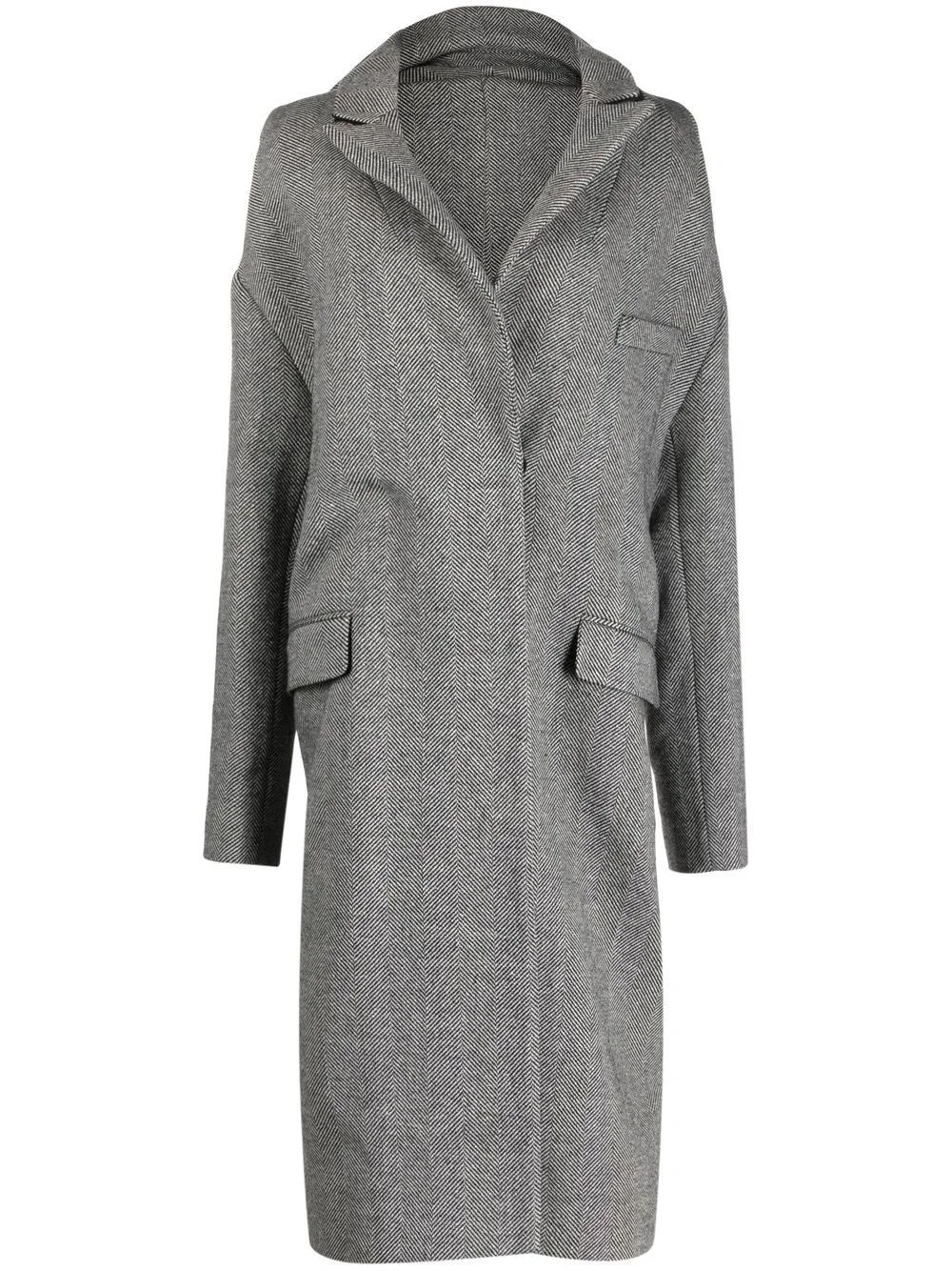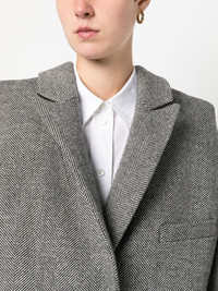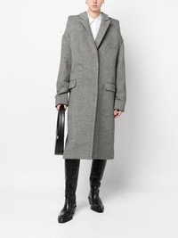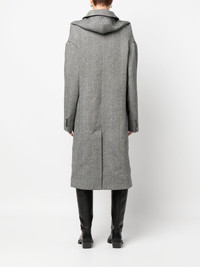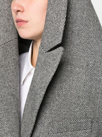 single-breasted herringbone coat black/white wool blend herringbone peak lapels classic hood drop shoulder concealed front fastening chest welt pocket two front flap pockets long sleeves straight hem central rear vent below-knee length Imported Composition Outer: Wool 72%, Polyamide 25%, other fibers 3% Lining: Viscose 52%, Cupro 48% SIZE & FIT Model measurements Height 5 ft 11 in(1.8 m) Bust/Chest 31.49 in(80 cm) Hips 36.41 in(92.5 cm) Waist 25.59 in(65 cm) FittingInformation This piece fits true to size. We recommend you get your regular size Cut for a loose fit Made with a mid-weight non-stretch fabric Washing instructions Dry Clean Only