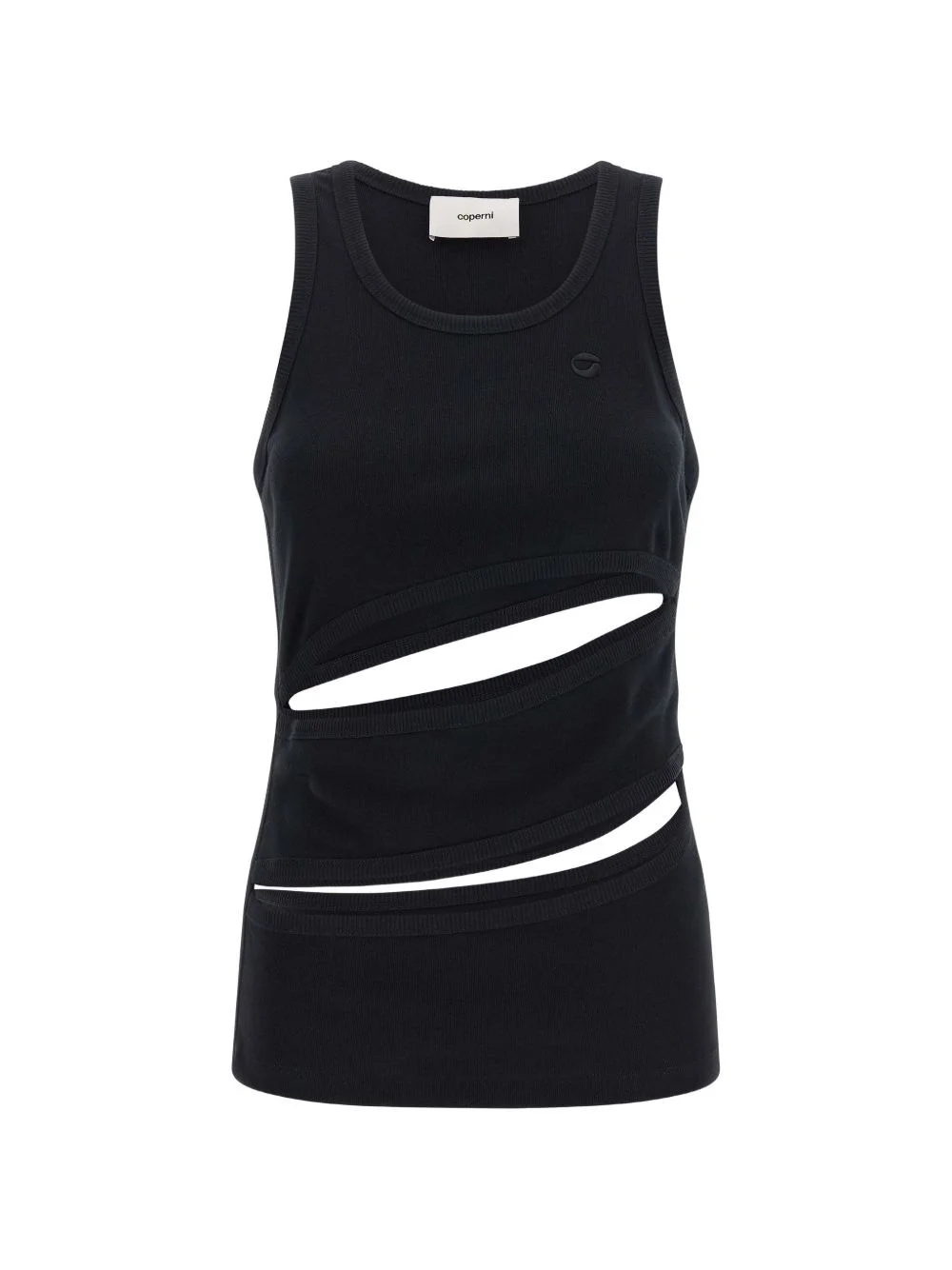 Spiral tank top Highlights - Black - Ribbed - Asymmetrical cutouts - Round neck - Tonal logo embroidery Imported Composition Organic Cotton 100% Washing instructions Read Manufacturer Guidelines