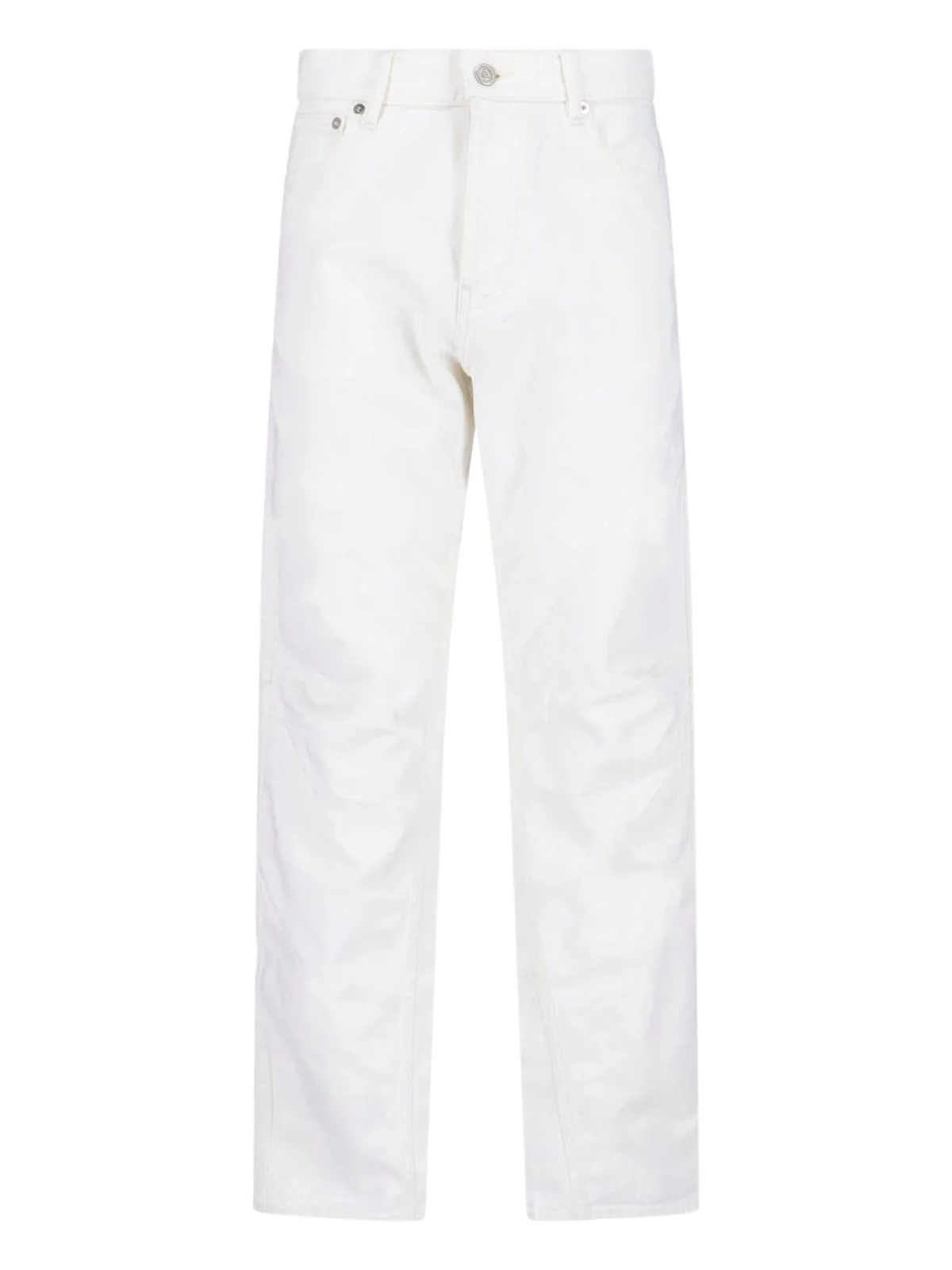 STRAIGHT JEANS WHITE ORGANIC COTTON DENIM HOODS, MID WAIST, ZIP AND BUTTON CLOSURE, BELT LOOPS, FIVE POCKET DESIGN, CONTRAST STRAP DETAIL AND SILVER METAL LOGO ON THE BACK POCKET, STRAIGHT LEG. PRODUCT INFO PRODUCT CODE COPP171F2054WWHT COMPOSITION: 100% ORGANIC COTTON SIZE AND FIT: REGULAR FIT MADE IN: PORTUGAL - PRODUCT MADE FROM ORGANIC MATERIALS