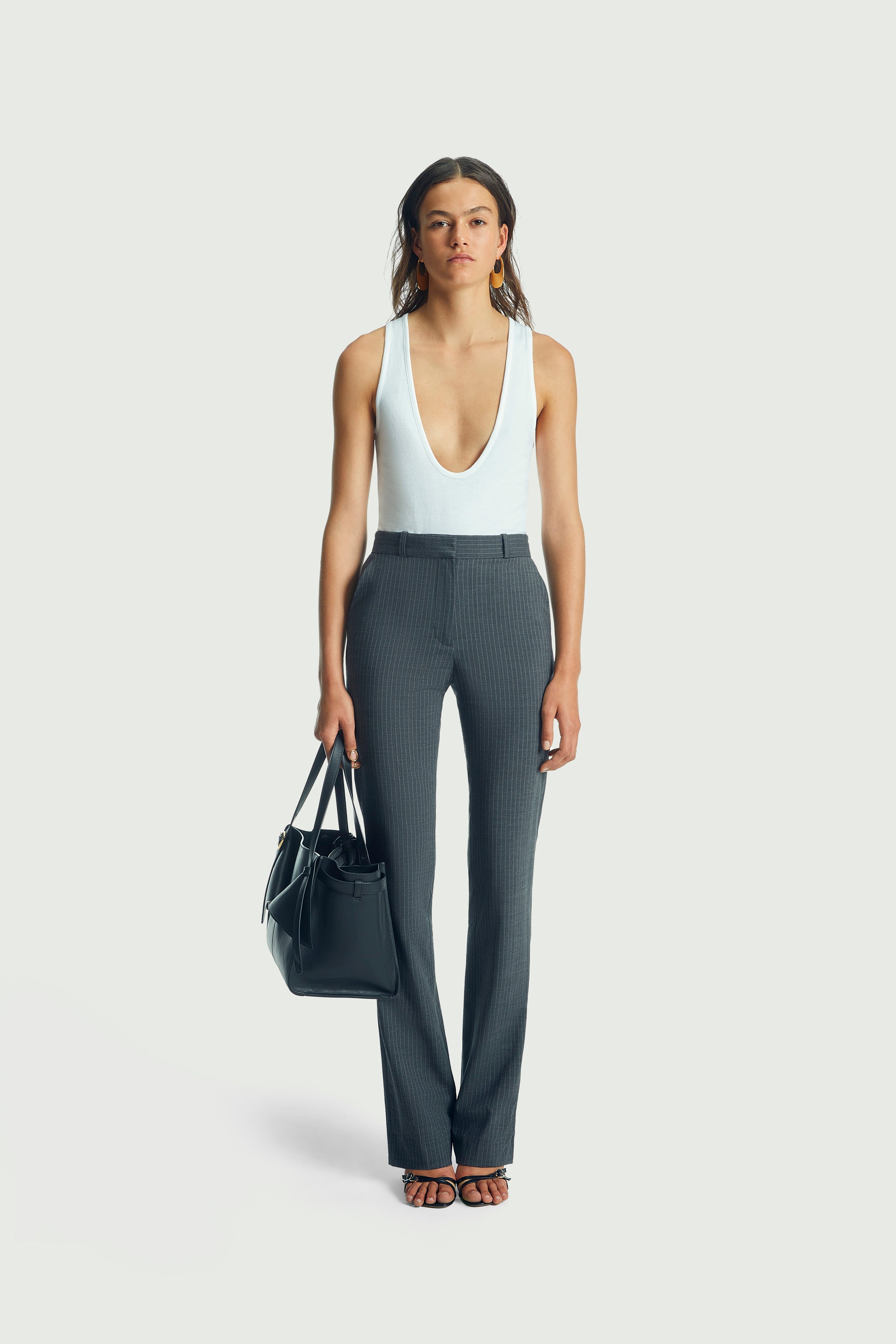 High-waisted classic straight trousers crafted from ligtweight wool for a close flattering fit. Designed for a longline look so that the material gathers around the ankles. Details Grey Wool Made In Portugal COPP76140 Size and Fit Model is 177 cm / 5'8 ft and is wearing size S.