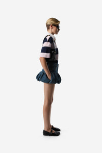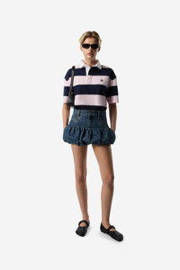 Coperni’s baby pink and navy striped polo top is crafted from pure premium cotton for a crisp collegiate look. Loosely cut with short sleeves and a strong, rigid collar with a hidden button placket, the polo is effortlessly stylish and is embellished with its own ‘varsity’ emblem in the form of an embroidered C logo. Details Pink-Blue COPJS117F5026 100% Cotton Made in Portugal Size and Fit Model is 175 cm / 5.9 ft and wears size S.