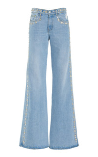 Studded Rigid High-Rise Wide-Leg Jeans light wash