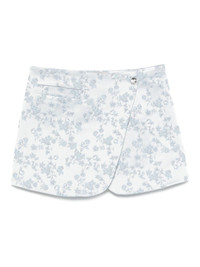 floral-jacquard wrap mini skirt Highlights - Light blue - Floral jacquard - Wrap design - Front button fastening - A-line shape - Thigh length Imported Composition Outer: Cotton 72%, Polyester 28% Lining: Acetate 52%, Viscose 48% SIZE & FIT Model measurements Height 5 ft 10 in(1.77 m) Bust/Chest 33.07 in(84 cm) Hips 37 in(94 cm) Waist 24.8 in(63 cm) FittingInformation This mini-length skirt is intended to be worn low on the hips Made from a midweight non-stretch fabric Washing instructions Machine Wash