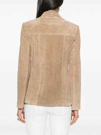suede single-breasted jacket Highlights - Beige - Leather - Suede - Spread collar - Shoulder pads - Long sleeves - Two chest patch pockets - Full lining - Straight hem - Front button fastening Made in Italy Composition Outer: Leather 100% Lining: Viscose 100% SIZE & FIT Model measurements Height 5 ft 11 in(1.8 m) Bust/Chest 33.07 in(84 cm) Hips 37.4 in(95 cm) Waist 25.19 in(64 cm) FittingInformation Designed for a slim fit that sits just away from the body offering a close yet comfortable fit The internal shoulder pads offer a structured shape Suede leather has a soft and treated construction offering some flexibility This piece fits true to size – take your usual size