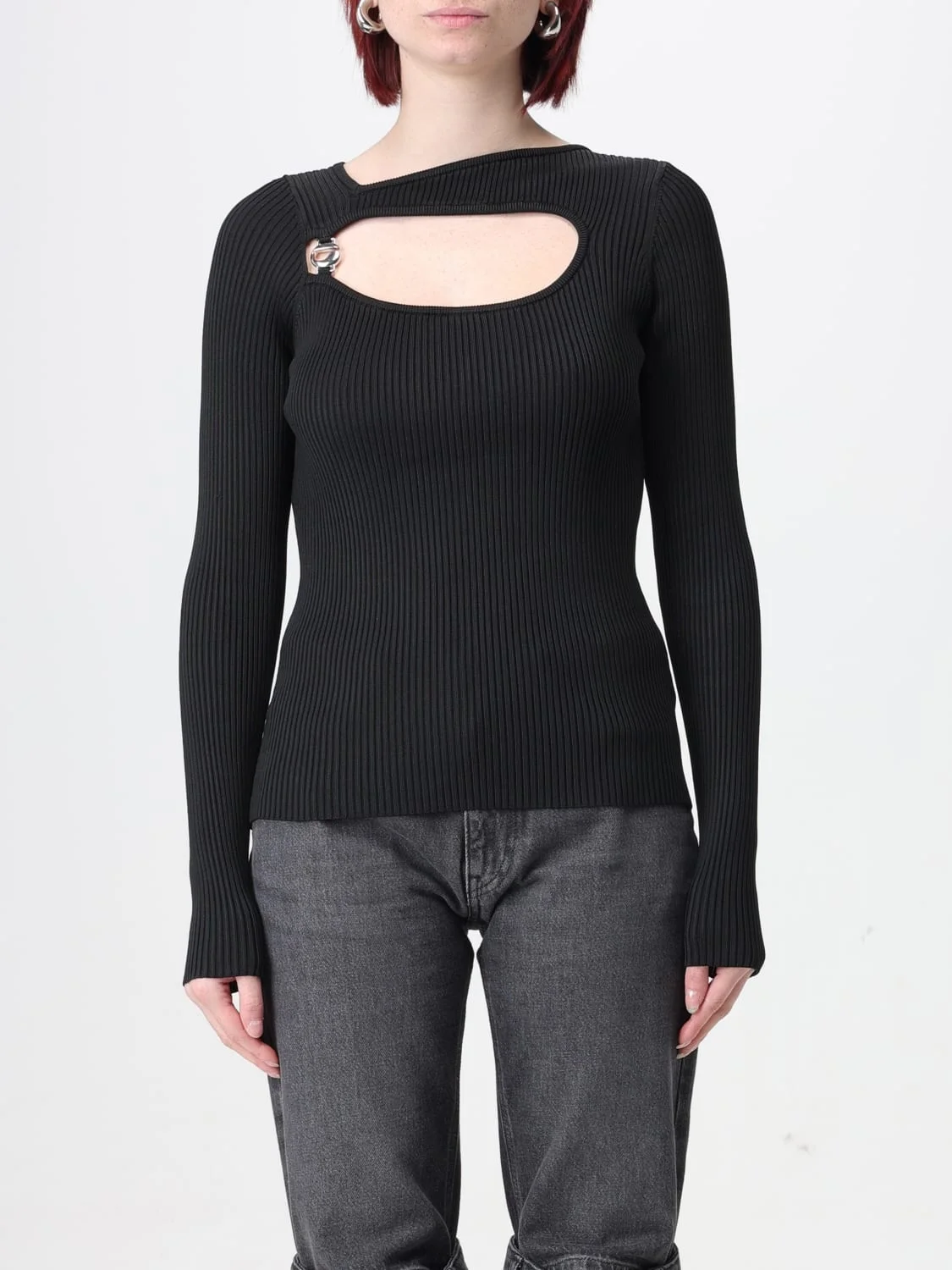 DESCRIPTION - Style: Casual - Logo: Metallic - Model: Cut-out - Neckline: Crewneck - Shoulders: Regular - Sleeves: Long - Bottom: With straight hemline - Materials: Viscose DETAILS AND CARE Composition Exterior: 100% Viscose SIZE AND FIT Sizes not available Size and fit Regular fit Designer code: COPML84600 BLACK Giglio Code: F19203 Designer: Coperni Collection: Coperni Woman Category: Clothing Coperni