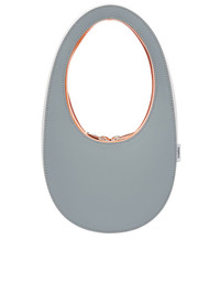 COPERNI bag in grey white orange, signature sculptural design, inspired by the iPhone unlock icon, color-block, embroidered logo, side woven label, double-ended zip closure, oval handle, silver-tone hardware. Made in Italy